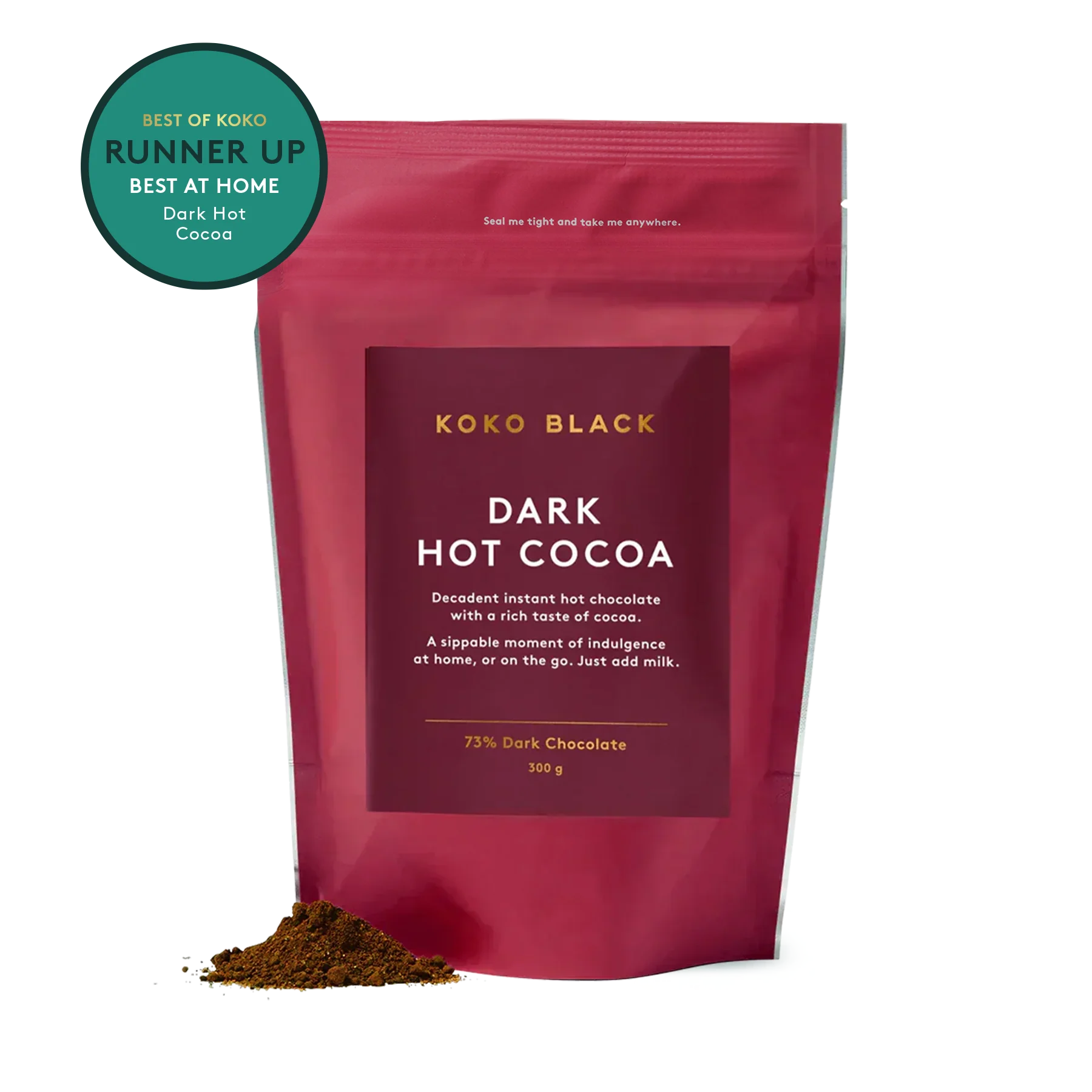 Dive into indulgence with Koko's rich and velvety dark hot cocoa. Made with 73% dark chocolate for a cup of pure perfection.